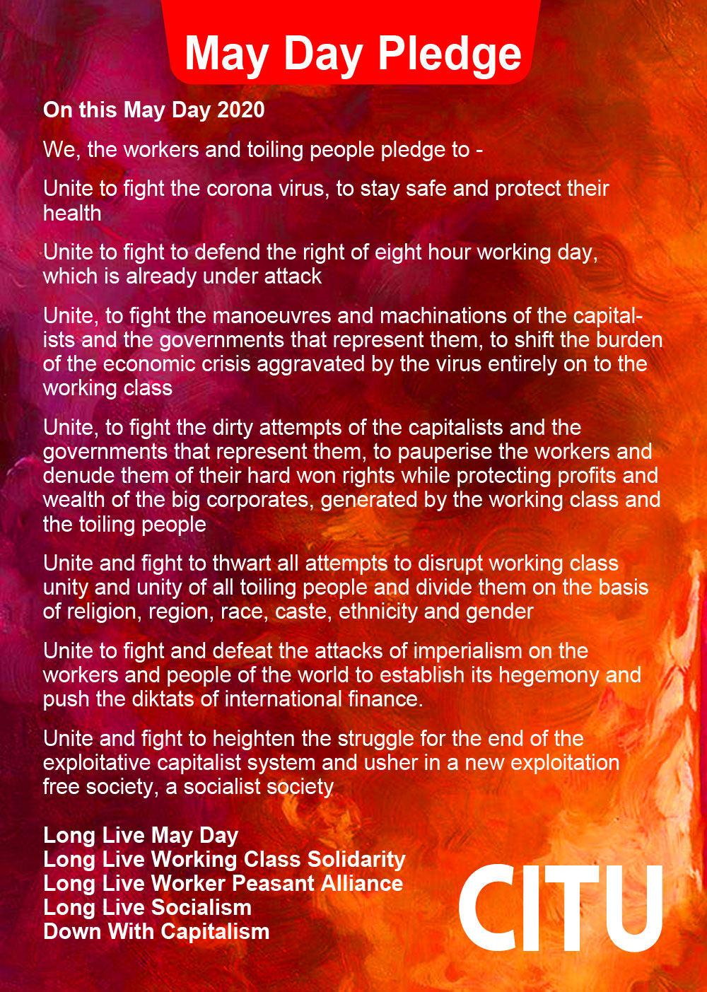 CITU appeals to all workers and toiling people across the world and in India to -